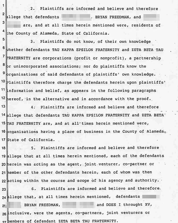 Neither Freedman, his friends nor their fraternity Zeta Beta Tau, also named in the suit, admitted any liability.