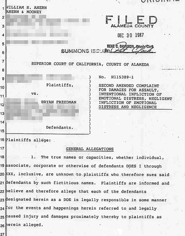 This is the shocking allegation at the heart of a lawsuit obtained by DailyMail.com and brought by Freedman’s alleged victim in 1986, the year after he graduated from the University of California in Berkeley.
